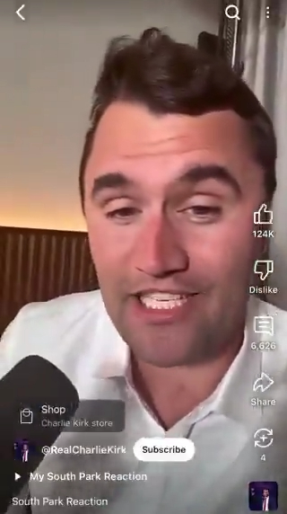 The segment, which first aired Aug. 6, featured Eric Cartman dressed and talking like Kirk as he staged a campus debate. It ended with Cartman receiving the “Charlie Kirk Award for Young Masterdebaters.”
